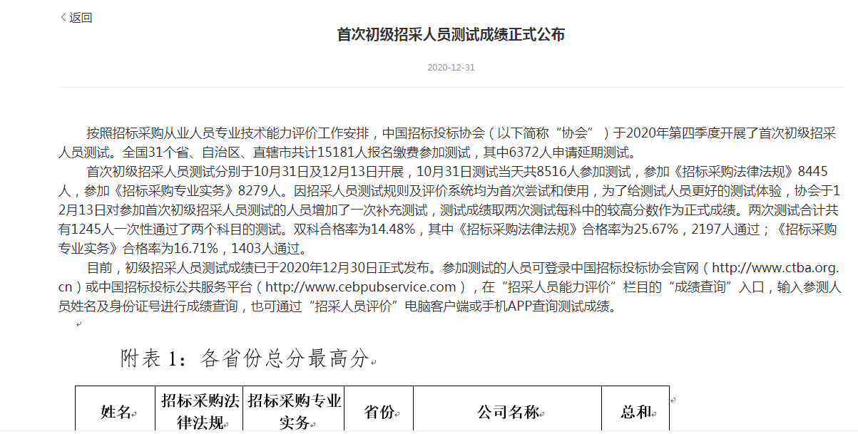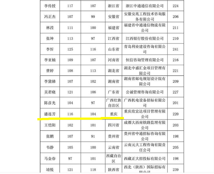 小編的視線順著網(wǎng)頁光標(biāo)往下瀏覽,最終在附表第二頁找到了那個(gè)熟悉的名字——重慶欣宏達(dá)項(xiàng)目管理有限公司潘連芳,獲得首次初級招采人員測試重慶地區(qū)成績第一名。哪怕和全國各省份的狀元們放在一起,她的成績也毫不遜色。